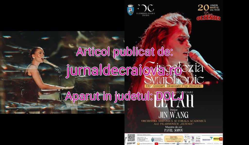 DeZiua Olteniei , publicul din Craiova va avea parte de un moment muzical special:concertul „Cinestezia Symphonic” cu Leyah , un proiect original care aduce împreună orchestra simfonică și energia muzicii contemporane. Evenimentul va avea locvineri, 20 martie 2026, de la ora 19:00 , pe scenaFilarmonicii „Oltenia” Craiova .