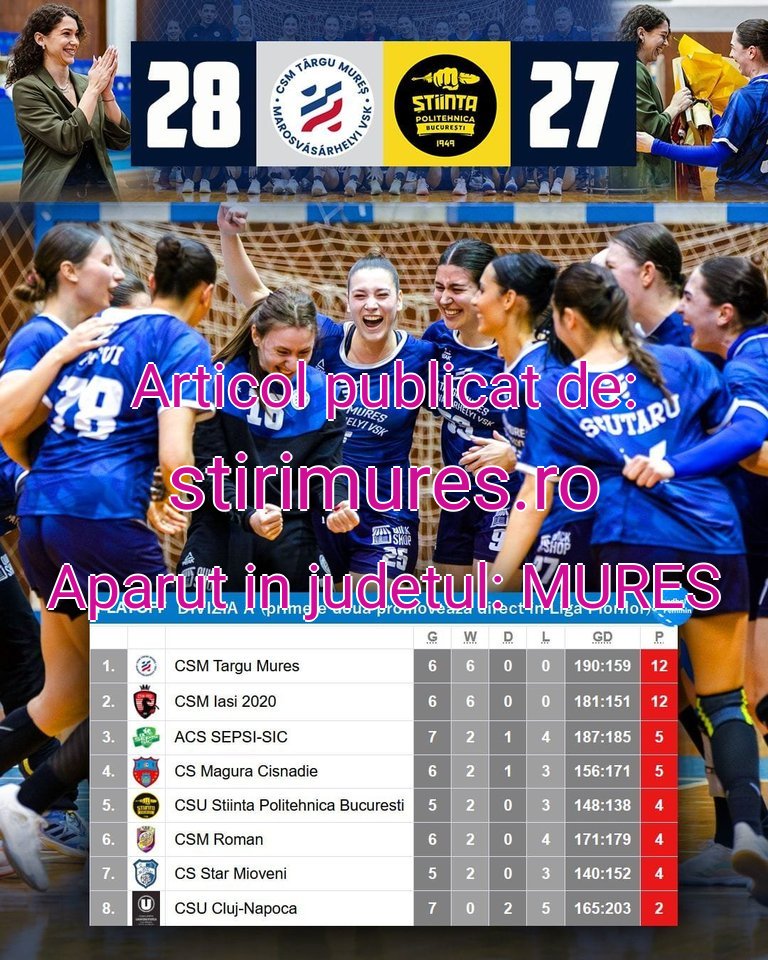 Handbalul mureșean trăiește din nou momente electrizante.CSM Târgu Mureș a obținut o victorie extrem de importantă în playoff-ulDiviziei A , învingândCSU Știința Politehnica București cu 28–27 , într-un meci tensionat până în ultimele secunde.